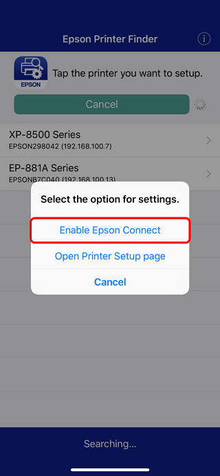 Tap “Enable Epson Connect”.