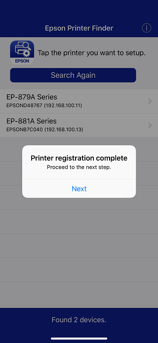 Tap “Next” when the message that the registration is complete is displayed.